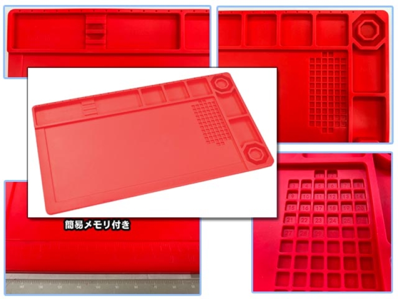 小さく仕切られたスペースを活用し、部品分けや、プラモデル用接着剤を置くなど、きれいな作業台をキープ!優れた耐熱性、断熱性、耐腐食性を兼ね備えており、ハンダ付け作業にも最適!模型のみならず、電子工作にも役立つ商品となっております。