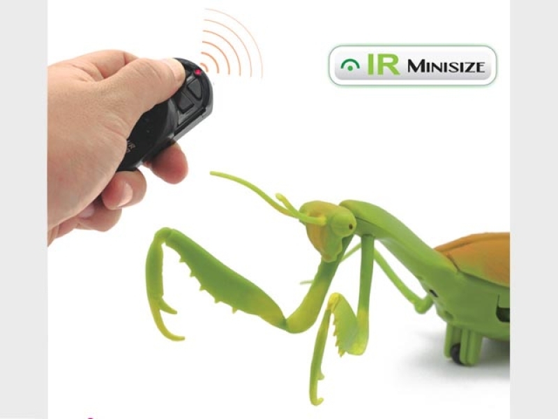 RCに昆虫シリーズが登場! 特徴的なカマ状の捕獲肢や、4つの節から構成される前脚もしっかりと再現。前進・右回転・オート機能を搭載しています(足ではなく下部のホイールにより走行、足は動きます。※飛行しません)。