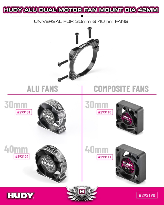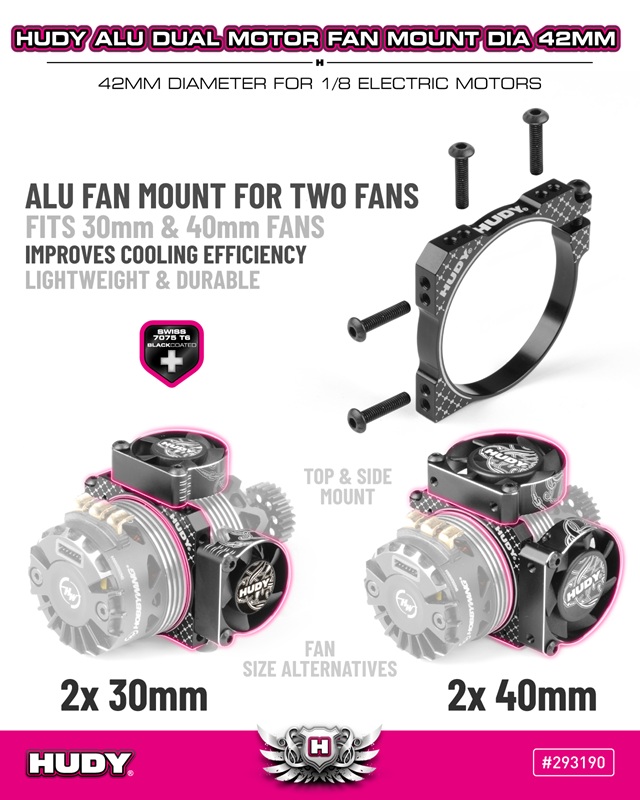 293190# HUDY 1/8 EPカー直径42mmモーター用アルミデゥアルモーターファンマウント(φ42mm/2x30mm/2x40mm)