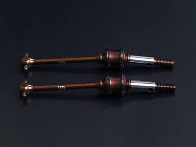 Xray/VBC用とBD7用ダブルジョイントユニバーサルシャフトは、全てのピンにチタンコーティングを施して耐摩耗性を向上させてあります。また高精度の加工によりドライブシャフトのブレを大幅に抑え、ドライブフィーリングを格段に向上させています。