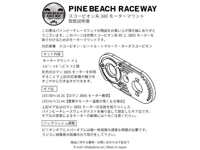 PBRW-101BK 380モーターマウントKYOSHOスコーピオンシリーズ用 ブラック