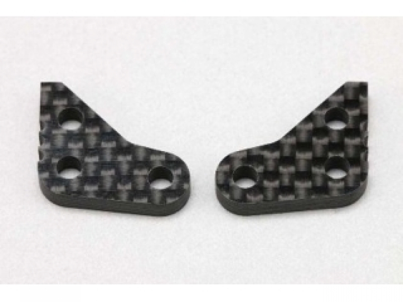 2WDレーシングトラックYZ-2T用のグラファイト製ステアリング ブロック プレートです。タイロッド取付位置のオフセットはYZ-2CAL2のプレートに比べて1.0mm後ろ寄りとなり、リニア感は残しつつマイルドなステアリング特性に仕上げています。2枚入。