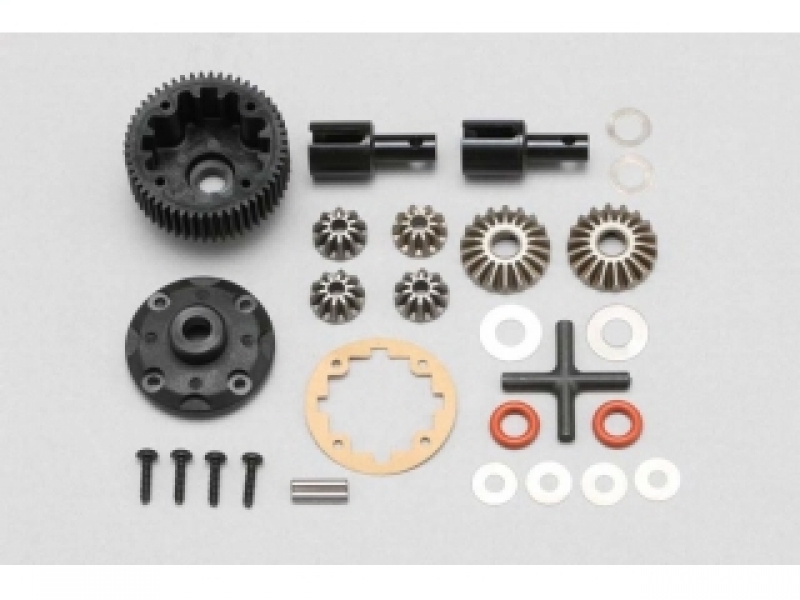 デフケースの内部形状を見直し、大容量化を果たしたYZ-2シリーズ用のギヤデフキットです。容量が高まることでデフの作動が安定します。ギヤは耐久性の高いメタルギヤを採用。クロスピンは軽量な樹脂製です。