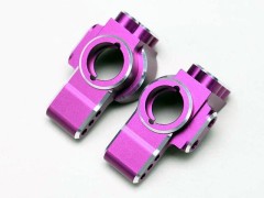 ニュートラルな特性で好評のRD/SDシリーズ用 オフセット0ステアリングブロックのカラーバージョンで、マシンカラーに合わせたブルー、パープル、レッドの3色が新たに加わります。標準の樹脂製に比べ、アルミ化することで大幅に剛性が上がり、ステアリングレスポンスを高めることが可能です。アクスル保持精度も高まりますので、フロントのライントレースがしやすく、駆動ロスも低減します。