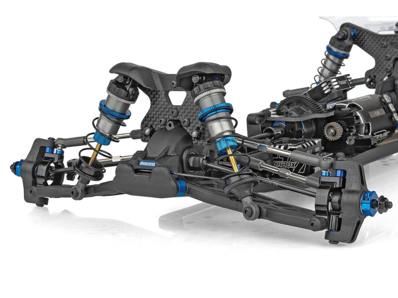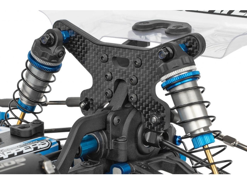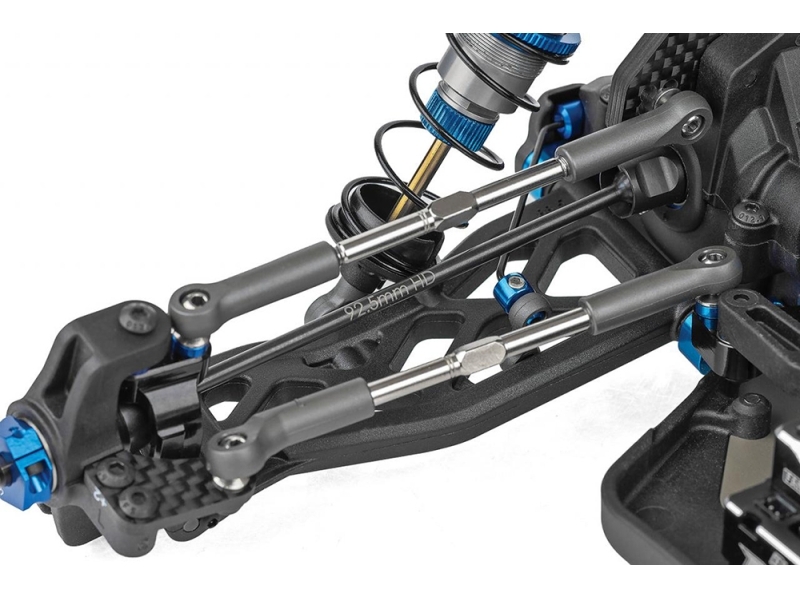 ショックタワーカバー、3.5mmターンバックル&ボールカップ、13mmビッグボアショックを装備し、強度・精度・走行性能を高次元で融合。