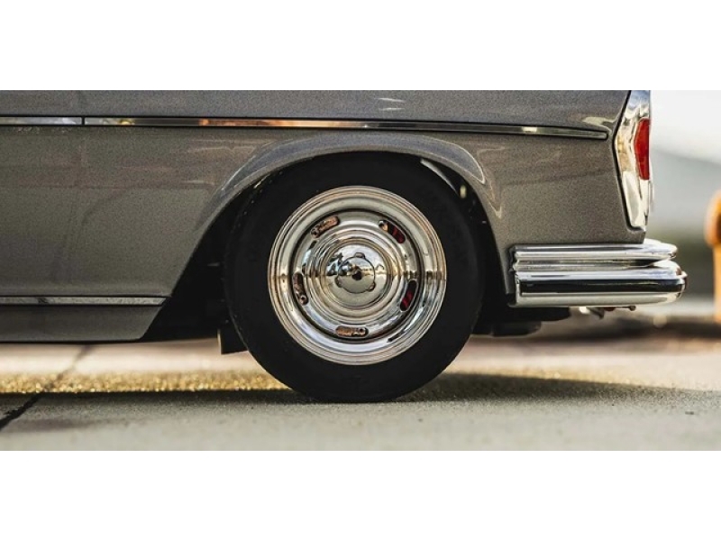 ●ビンテージカーにマッチするビンテージ TCタイヤとホイールキャップ付きラリーホイールを装着。
