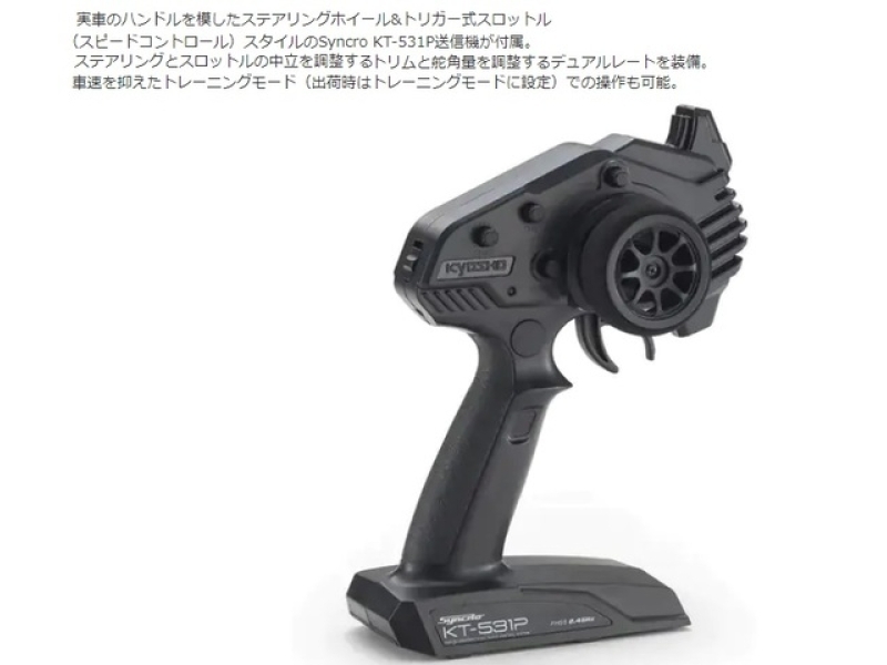 ●付属する送信機は高い信頼性と多機能を誇るSyncro KT-531P。