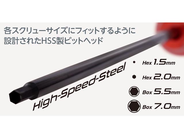 ・各スクリューサイズにフィットするように設計されたHSS製ビットヘッド