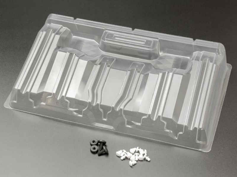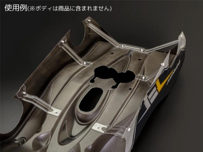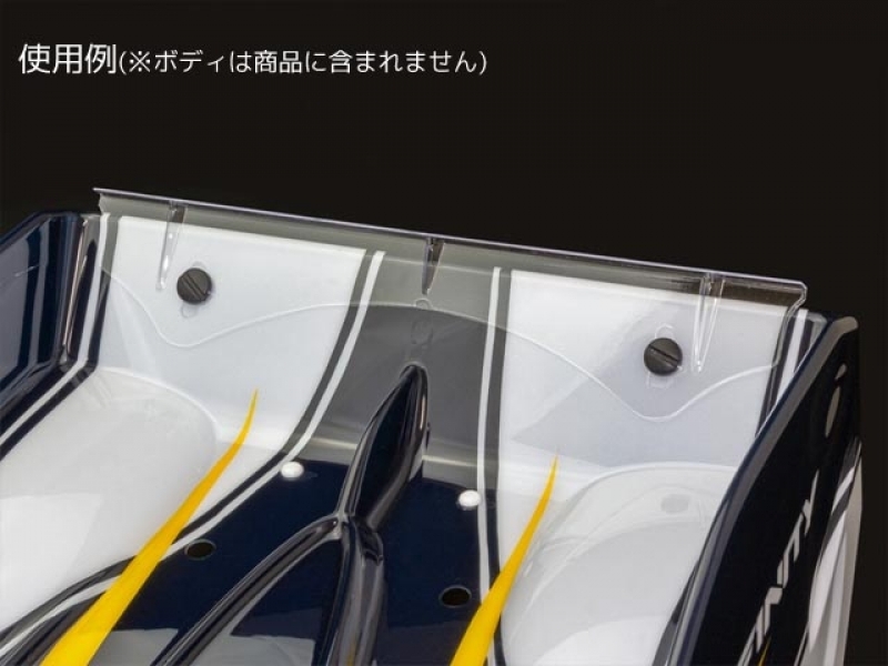 SMJ1411 SMJ C235 1/10GPボディ(235mm) 専用に開発されたリアスポイラー&スティフナーのセット。ボディー形状にフィットするようにデジタルモデリングされ、付属するプラスチックリベットで固定するだけで歪みなくボディーを仕上げる事が出来ます。