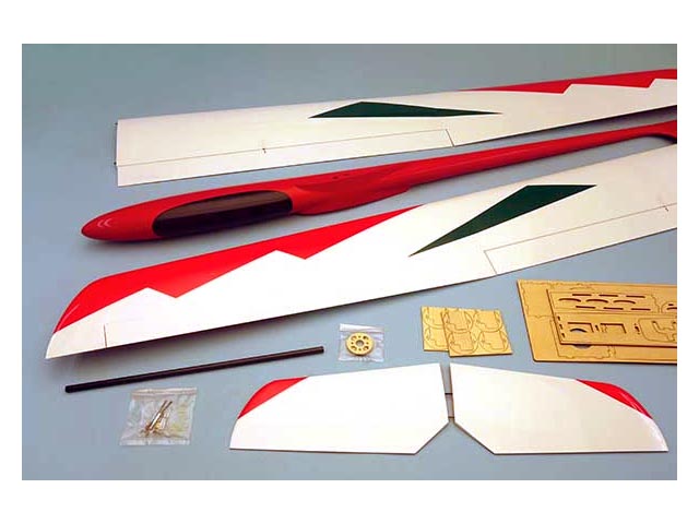 大型3mクラスのオールマイティーグライダー「エスプレット」。大型機ならではの飛行性能を取り回しの良い3mの翼長で体験していただけます。新しい翼型は、速度に乗せやすく広範囲にサーマルを探すことが可能です。グラスファイバー製塗装済完成胴体はピュアグライダーとして製作できるように出来ています。電動モーターを取り付ける場合には、付属の冶具に合わせてノーズをカットします。主翼は大型機に欠かせないフラップ装備、発泡スチロールにバルサプランク、フィルム貼り完成です。胴体はグラスファイバー製、塗装仕上げ。尾翼はオーソドックスなクロステールで水平尾翼はフライング式で低速時も充分な効きを確保しています。