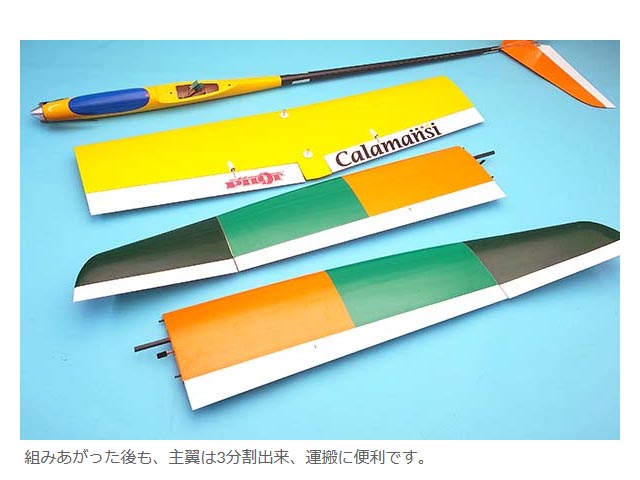 中級者向け大型モーターグライダー「カラマンシ」。抜群の飛行性能と取り回しで魅力的な翼長2.5mクラスです。