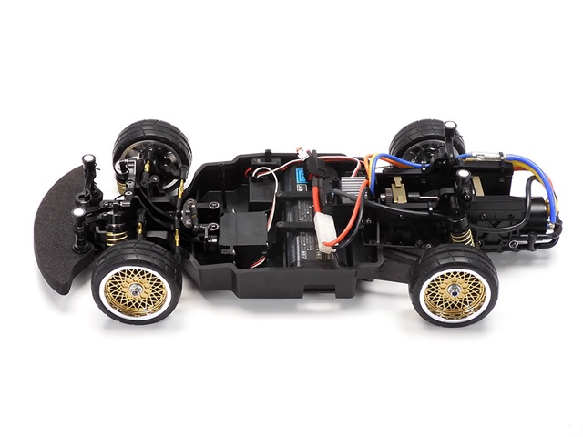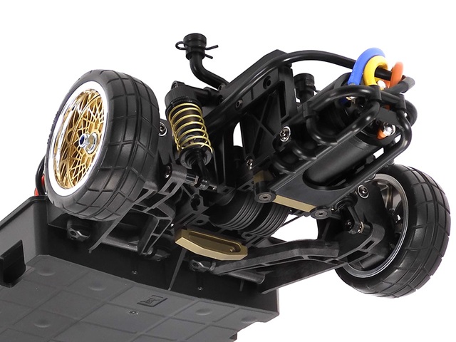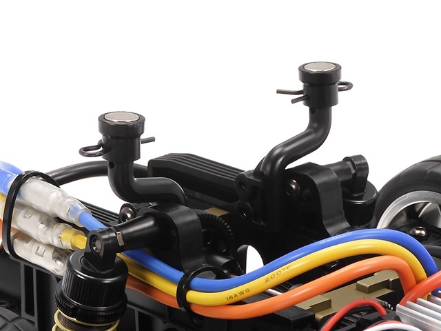 ★強化樹脂製ロワデッキの後端センターにモーター(別売)を縦置きして後輪を駆動する実車に近い駆動レイアウトを採用。