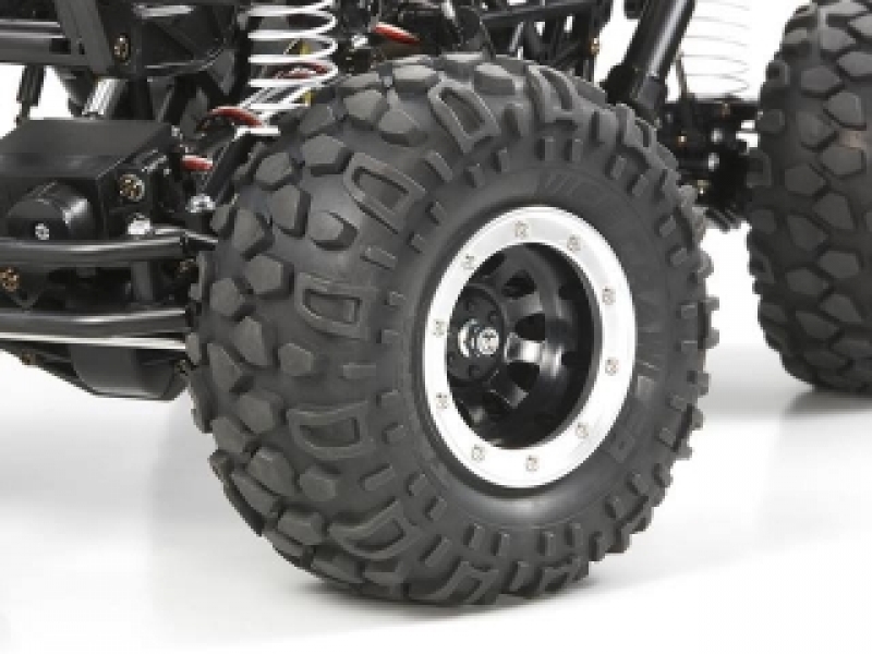 10、 インナースポンジ内蔵のタイヤは柔軟性を持たせるとともにサイドウォールにもパターンを配置。ホイールは3ピースのビードロックタイプを装備しました。