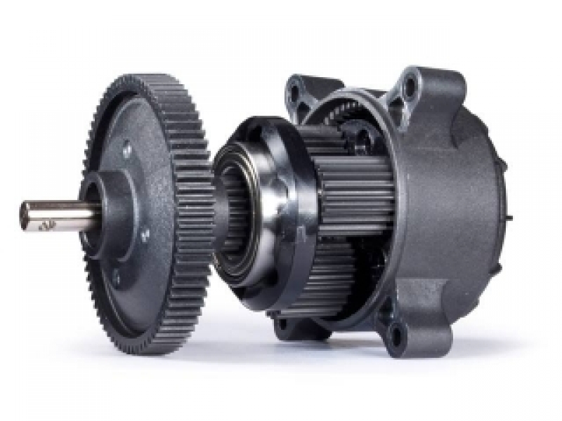 5、 パワーを前後に配分するトランスファーにプラネタリーギヤを採用。コンパクトながら大きな減速比がとれ、バッテリーを低く搭載できるため低重心化にも効果的。