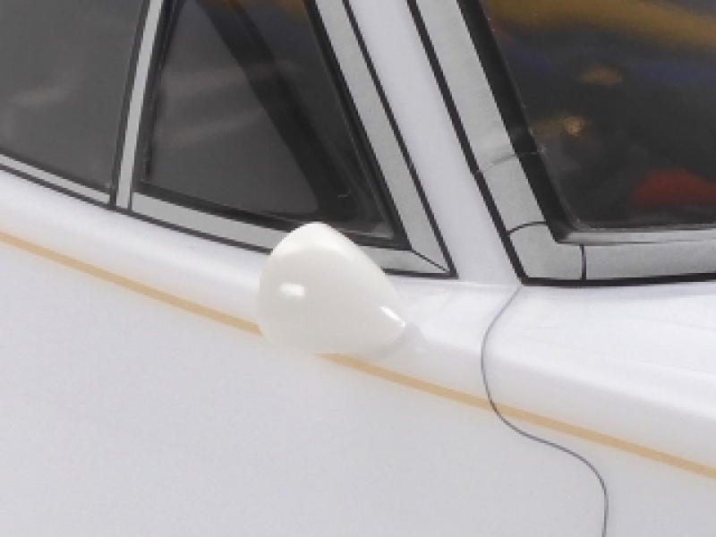3、 小さなドアミラーはロータス ヨーロッパの専用品。シャープな造形の樹脂製別パーツ。
