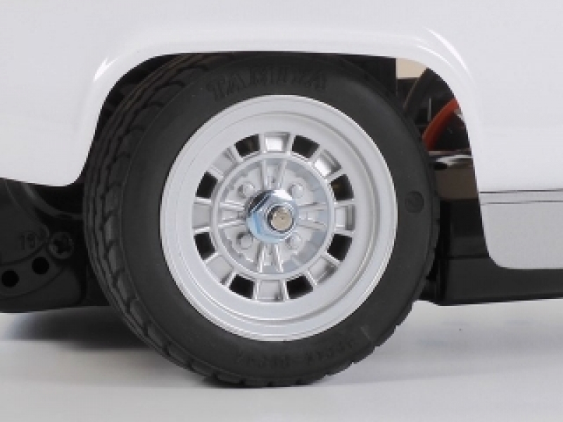 【 基本スペック 】 ●全長390mm、全幅176mm、全高114mm ●ホイールベース225mm ●トレッド 前後とも138mm ●駆動方式=リヤモーター・後輪駆動 ●デフギヤ方式=3ベベル ●ステアリングタイロッド=3分割 ●サスペンション=ダブルウィッシュボーン4輪独立 ●ダンパー=前後ともフリクション ●ギヤレシオ=5.8:1(キット標準20Tピニオン使用時) ●モーター=540タイプ ●タイヤ幅/径=前後とも25/59mm ●スピードコントローラー=ESC仕様(別売)