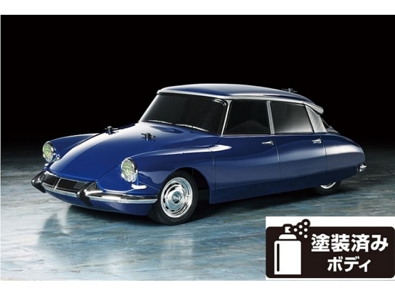 【 歴史的名車の走りをじっくり味わう 】 世界の自動車評論家が選んだ「20世紀の名車ランキング」で3位に輝き、フランスの第18代大統領シャルル・ト゛・ゴール氏の公用車に採用されたことでも知られるシトロエン DSがRCカーになりました。1955年の発表当時、前衛的な空力フォルムから「宇宙船」と呼ばれた姿はRCカーでも注目の的。ボディ本体はブルー、ウインドウはスモークで塗り分け、前後バンパーやヘッドライトは別パーツ構成としたスケール感の高い仕上がりです。シャーシはコンパクトサイズの2WD、MB-01を採用。クロームメッキされたホイールにはラジアルタイヤを装着しました。