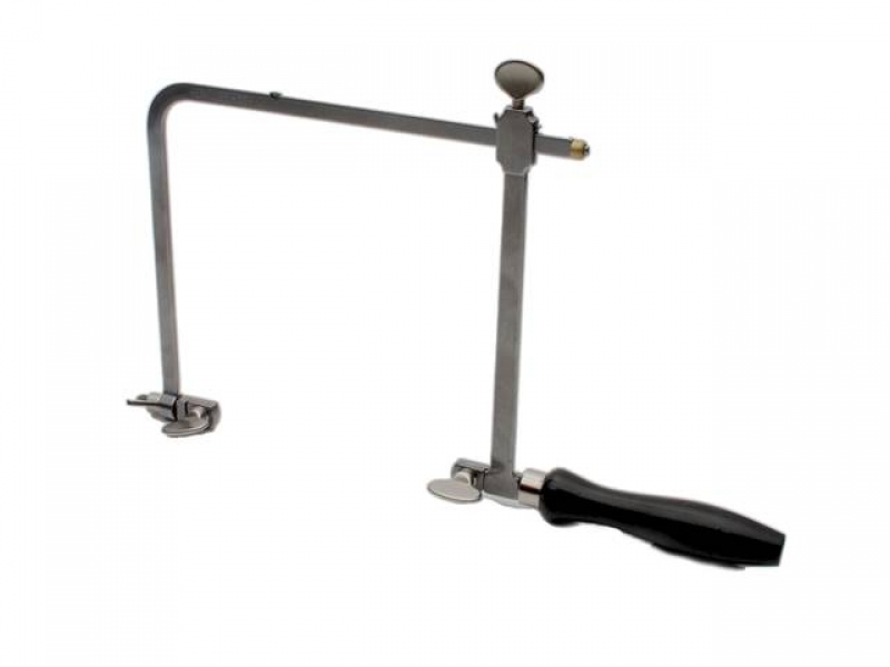 FRP板、CFRP板、アルミ板、真鍮板、ポリカーボネート板、プラスチック板等の精密加工に最適な糸鋸弓です。剛性が高く、正確な加工が行えます。また奥行きが深く、140mmまで加工が可能です。